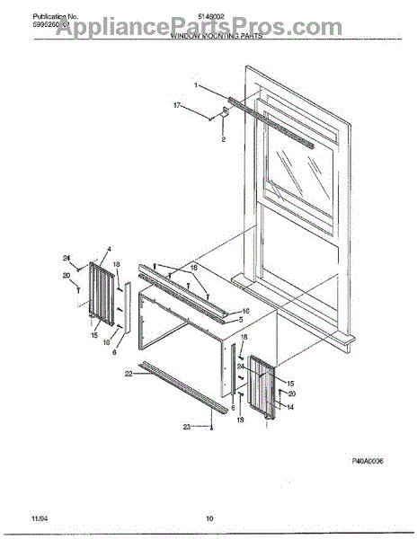 Parts for Frigidaire 5146002A: Window Mounting Parts