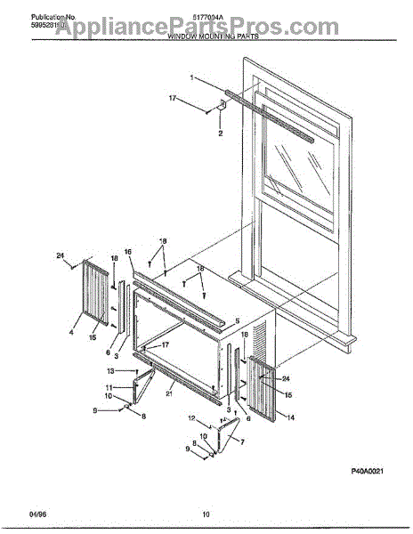 Parts for Frigidaire 5177004A: Window Mounting Parts