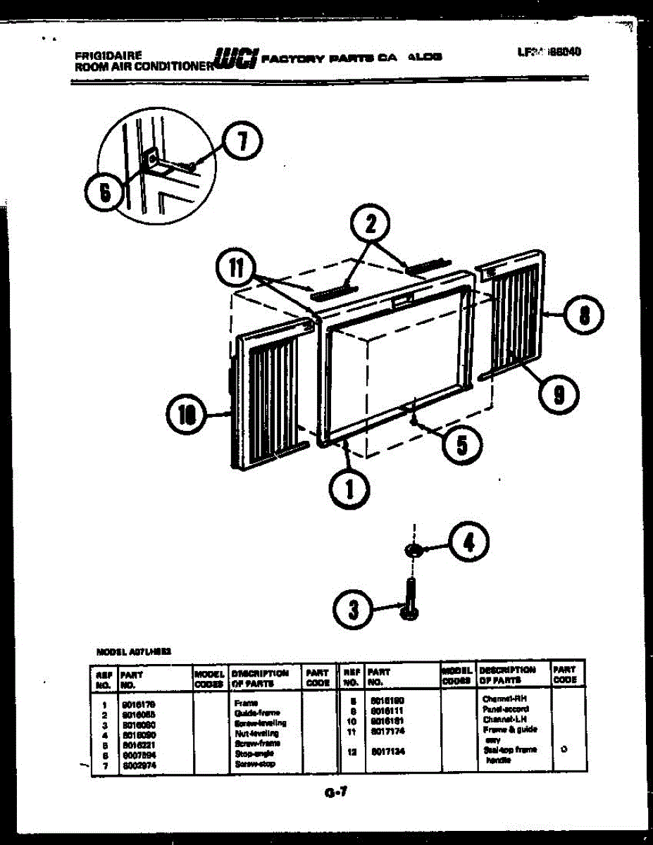 Parts for Frigidaire A07LH8E2: 07 - Window Mounting Parts