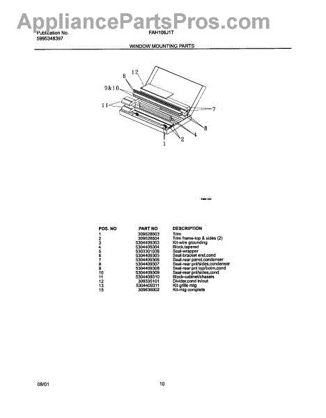 Parts for Frigidaire FAH106J1T2: 11 - Window Mounting Parts