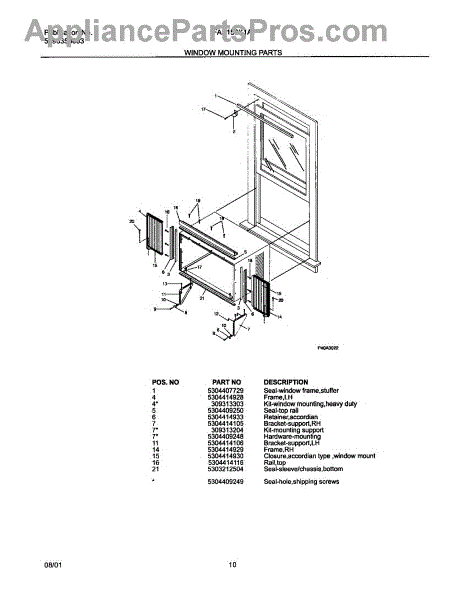 Parts for Frigidaire FAS153K1A1: 11 - Window Mounting Parts