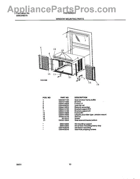 Parts for Frigidaire FAS183K2A1: 11 - Window Mounting Parts