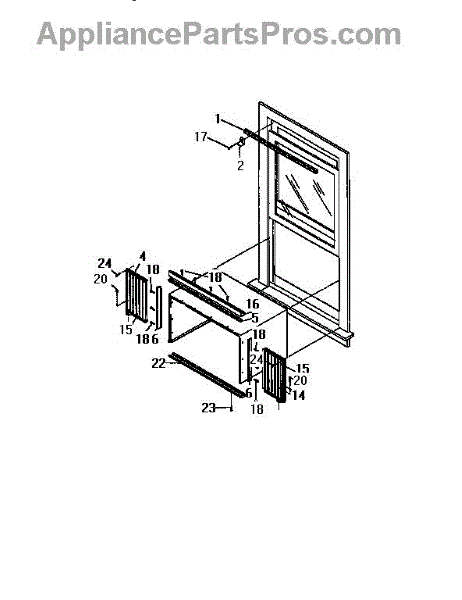 Window frame top seal for air conditioners. Replace when worn, cracked, or allowing air leaks to restore energy efficiency. Verify fit with your model.