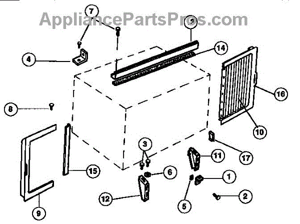 Right side frame extension for window air conditioners. Replaces broken, cracked, or missing extensions. Slides onto unit for secure installation.