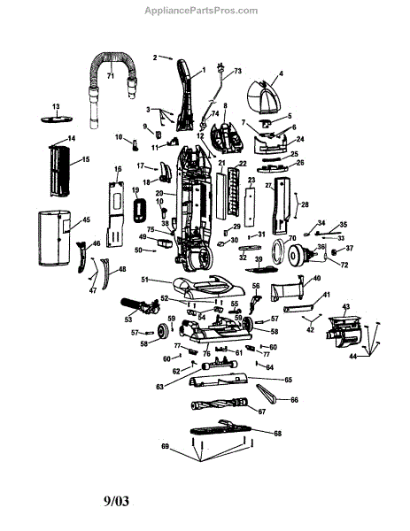 Parts for Hoover U5756-900: Windtunnel Bagless Assembly Parts