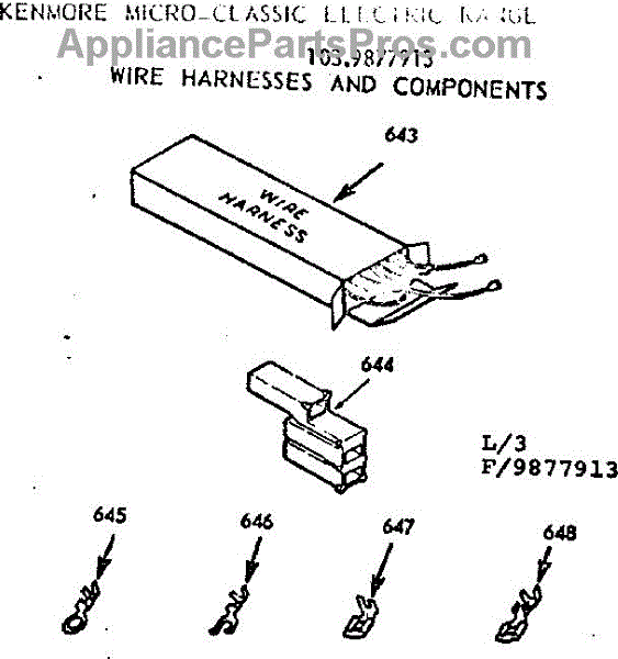 Parts for Kenmore 103.9877913 (1039877913, 103 9877913): Wire Harness And Components Parts