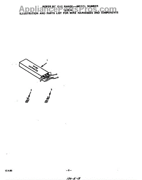 Parts for Roper 1266W0A: Wire Harness And Components Parts