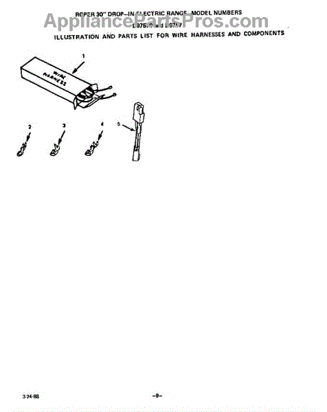 Parts for Roper D9757W1: Wire Harness And Components Parts