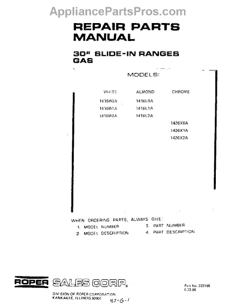 Parts for Roper 1416W1A: 01 - Wire Harness And Options Parts