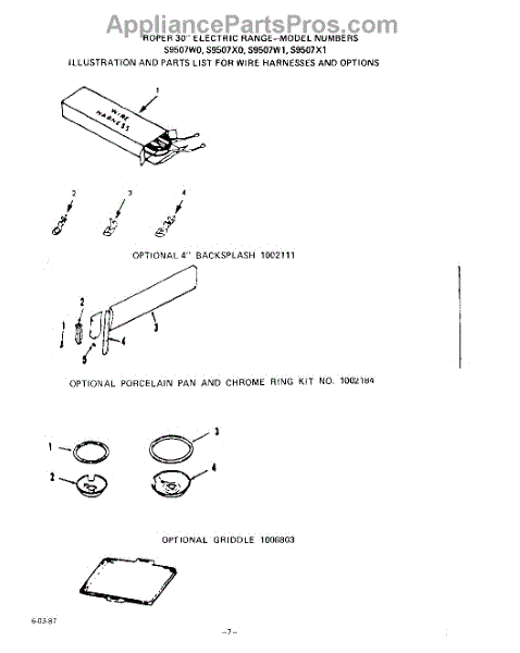 Parts for Roper S9507W1: 06 - Wire Harness, Lit / Optional Parts