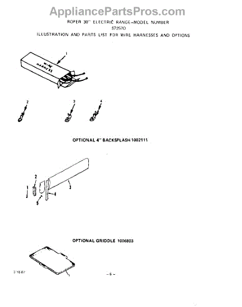 Parts for Roper S7257X0: 06 - Wire Harness Parts