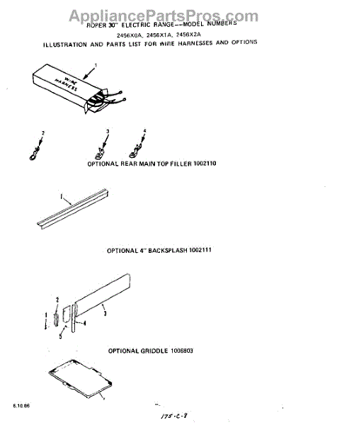 Parts for Roper 2456X1A: 07 - Wire Harness , Rear Main Top Fille Parts