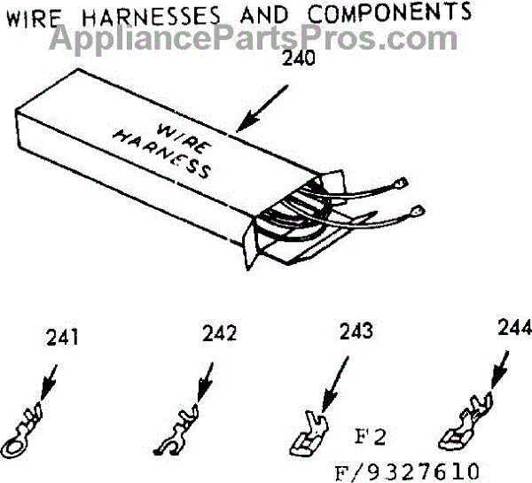 Parts for Kenmore 103.9327640 (1039327640, 103 9327640): Wire Harnesses And Components Parts