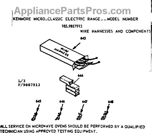 Parts for Kenmore 103.9887913 (1039887913, 103 9887913): Wire Harnesses And Components Parts