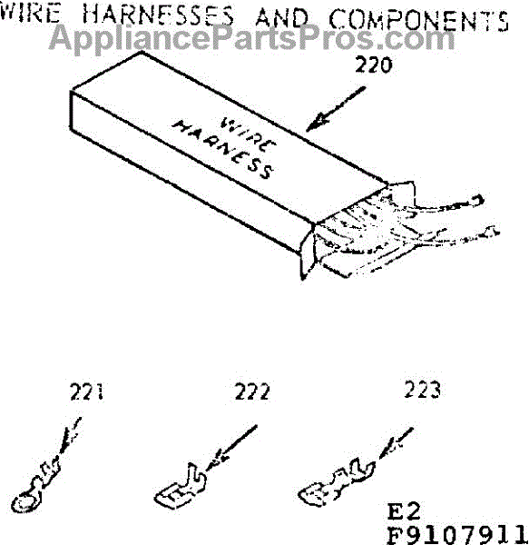 Parts for Kenmore 911.9107912 (9119107912, 911 9107912): Wire Harnesses And Components Parts