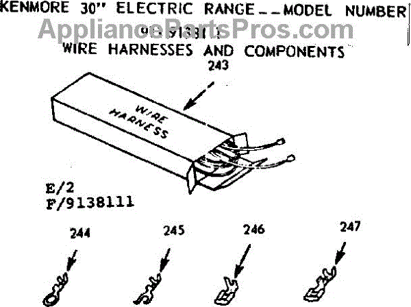 Parts for Kenmore 911.9138111 (9119138111, 911 9138111): Wire Harnesses And Components Parts