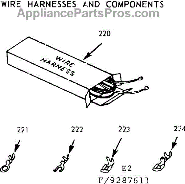 Parts for Kenmore 911.9287611 (9119287611, 911 9287611): Wire Harnesses And Components Parts