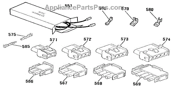 Parts for Kenmore 911.9851191 (9119851191, 911 9851191): Wire Harnesses And Components Parts