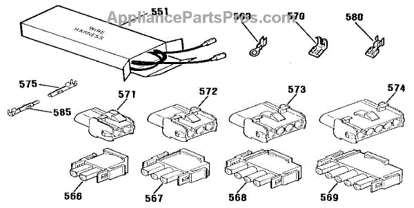 Parts for Kenmore 911.9851192 (9119851192, 911 9851192): Wire Harnesses And Components Parts