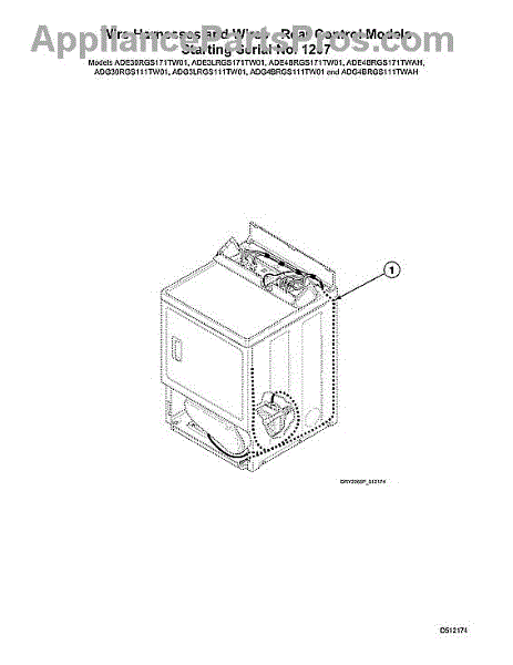 Parts for Speed Queen ADG3LRGS111TW01: Wire Harnesses / Wires-Rear Control Models Start Serial #1207 Parts