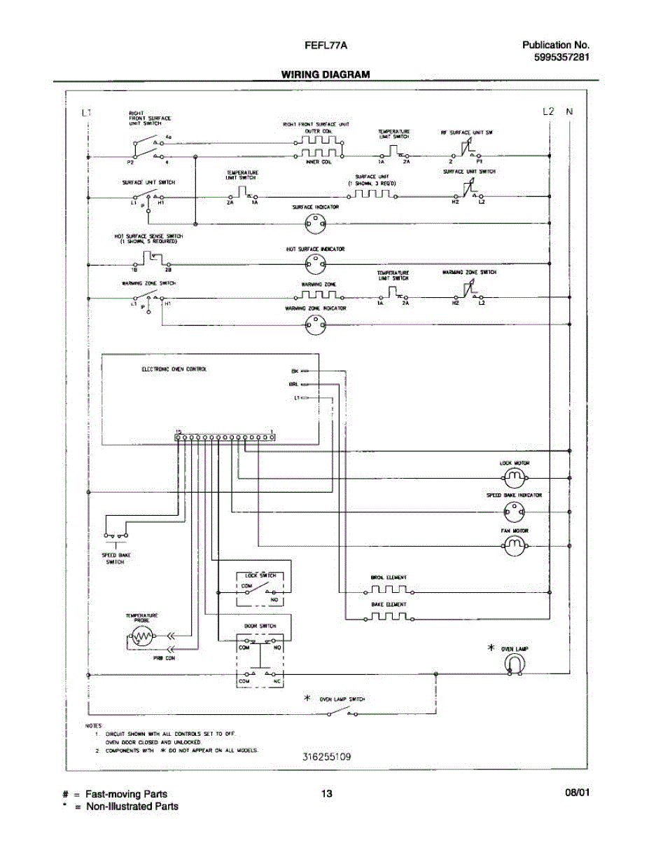 Parts for Frigidaire FEFL77AQA: 13 - Wiring Diagram Parts