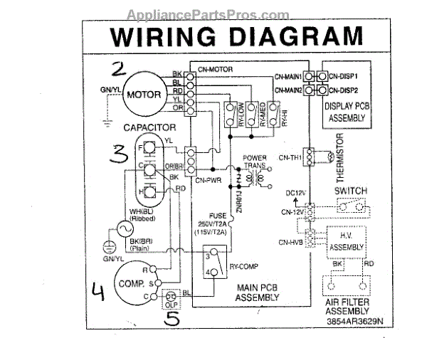 Parts for Friedrich US10B10A: Wiring Diagram Parts