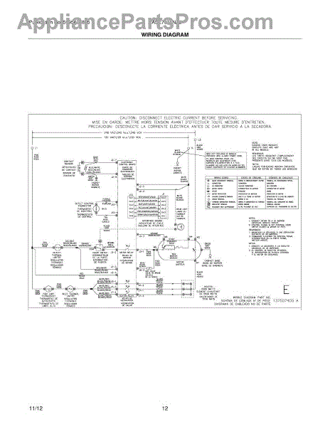 Parts for Frigidaire CASE7074NA2: 12 - Wiring Diagram Parts