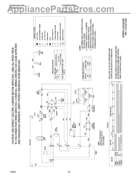 Parts for Frigidaire CGR3600AS3: 12 - Wiring Diagram Parts