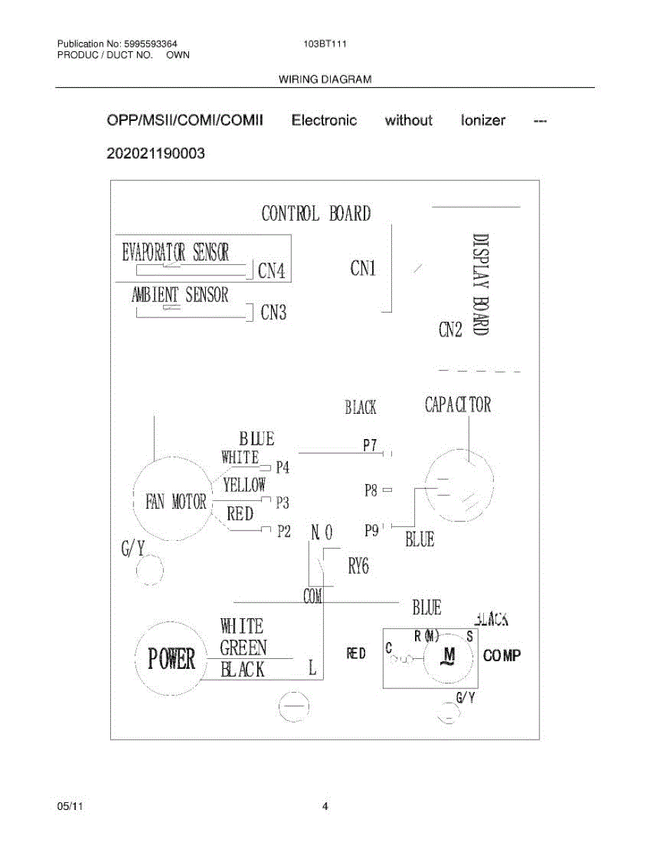 Parts for Frigidaire CRA103BT110: 04 - Wiring Diagram Parts