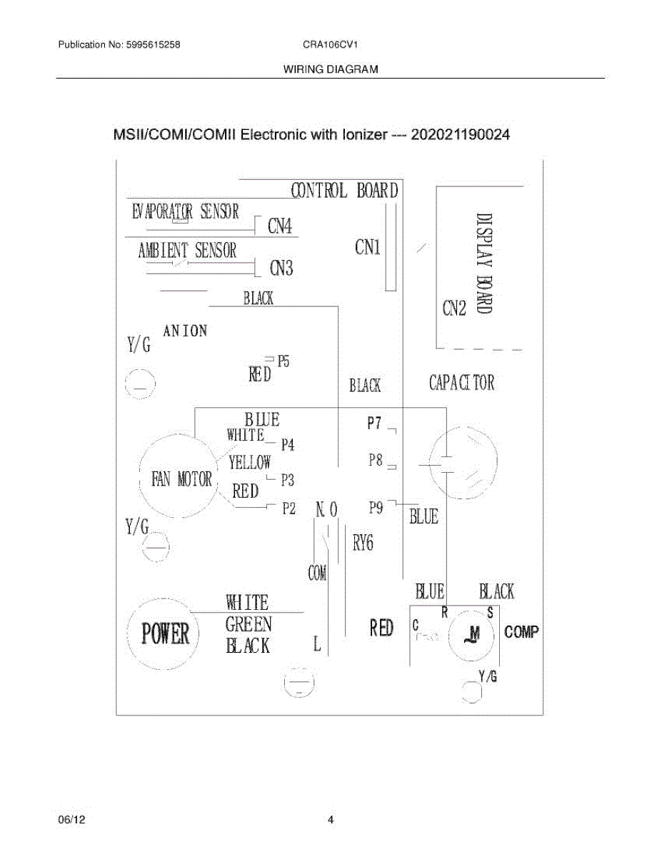 Parts for Frigidaire CRA106CV110: 04 - Wiring Diagram Parts