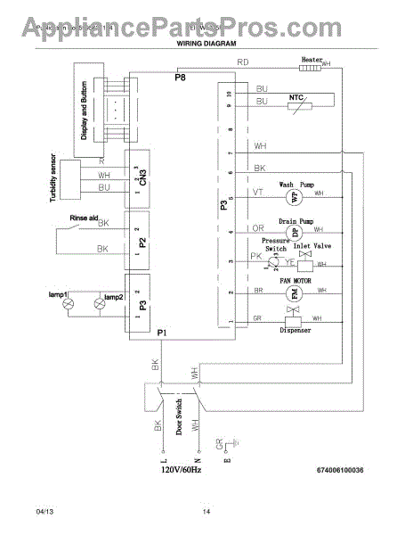 Parts for Frigidaire EIDW5705PW0A: 14 - Wiring Diagram Parts