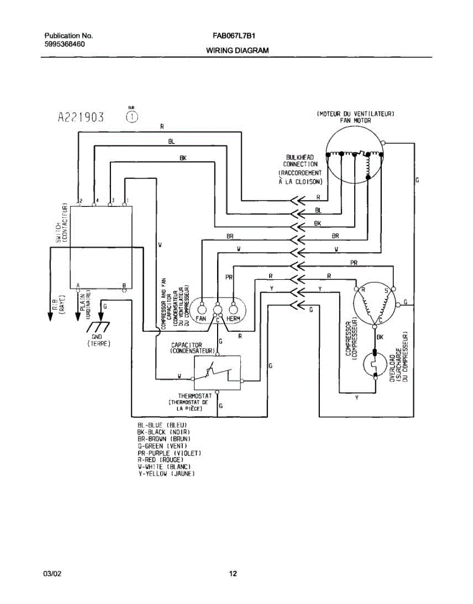 Parts for Frigidaire FAB067L7B1: 12 - Wiring Diagram Parts