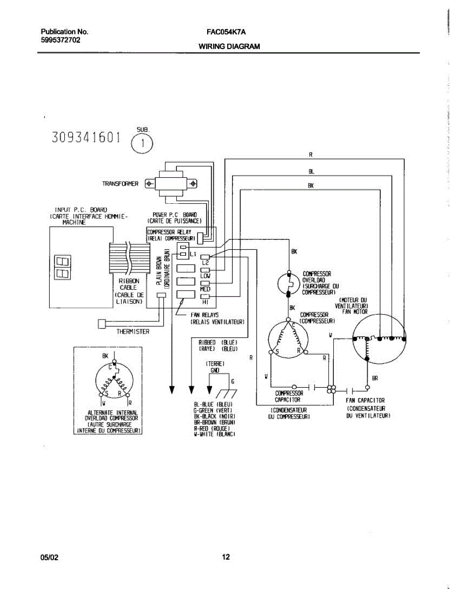 Parts for Frigidaire FAC054K7A6: 12 - Wiring Diagram Parts