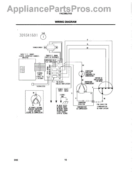 Parts for Frigidaire FAC085J7A3: 10 - Wiring Diagram Parts