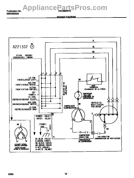 Parts for Frigidaire FAC086W7A1: 07 - Wiring Diagram Parts