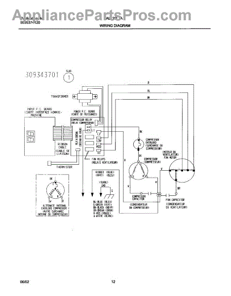 Parts for Frigidaire FAL126L1A2: 12 - Wiring Diagram Parts