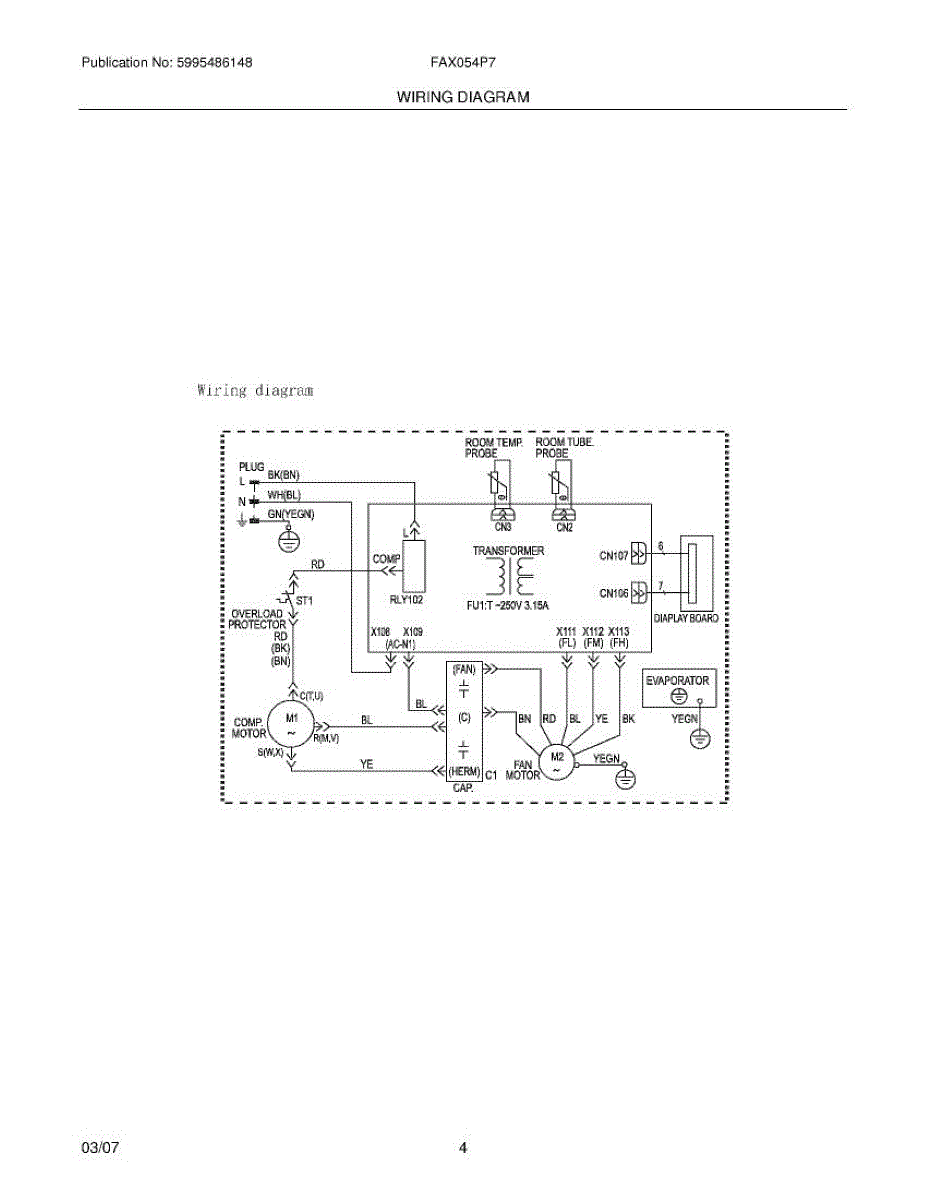 Parts for Frigidaire FAX054P7AENG2: 04 - Wiring Diagram Parts