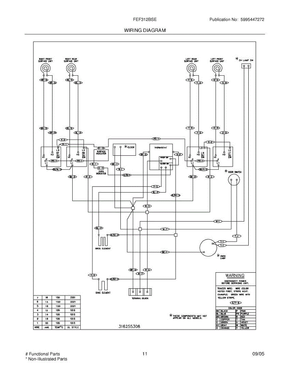 Parts for Frigidaire FEF312BSE: 11 - Wiring Diagram Parts