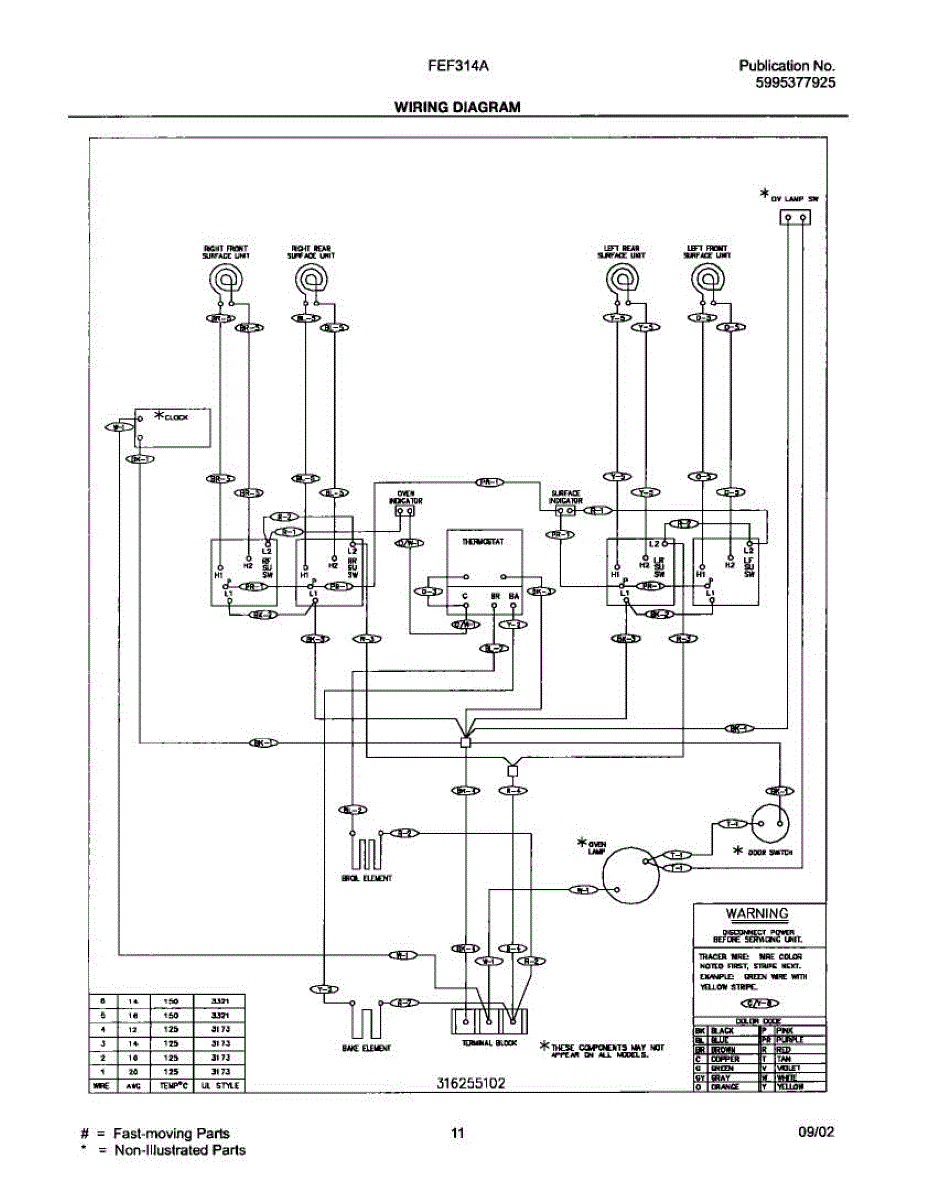 Parts for Frigidaire FEF314AUB: 11 - Wiring Diagram Parts
