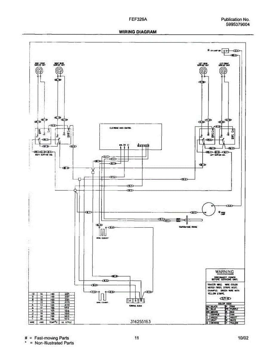Parts for Frigidaire FEF326AUC: 11 - Wiring Diagram Parts