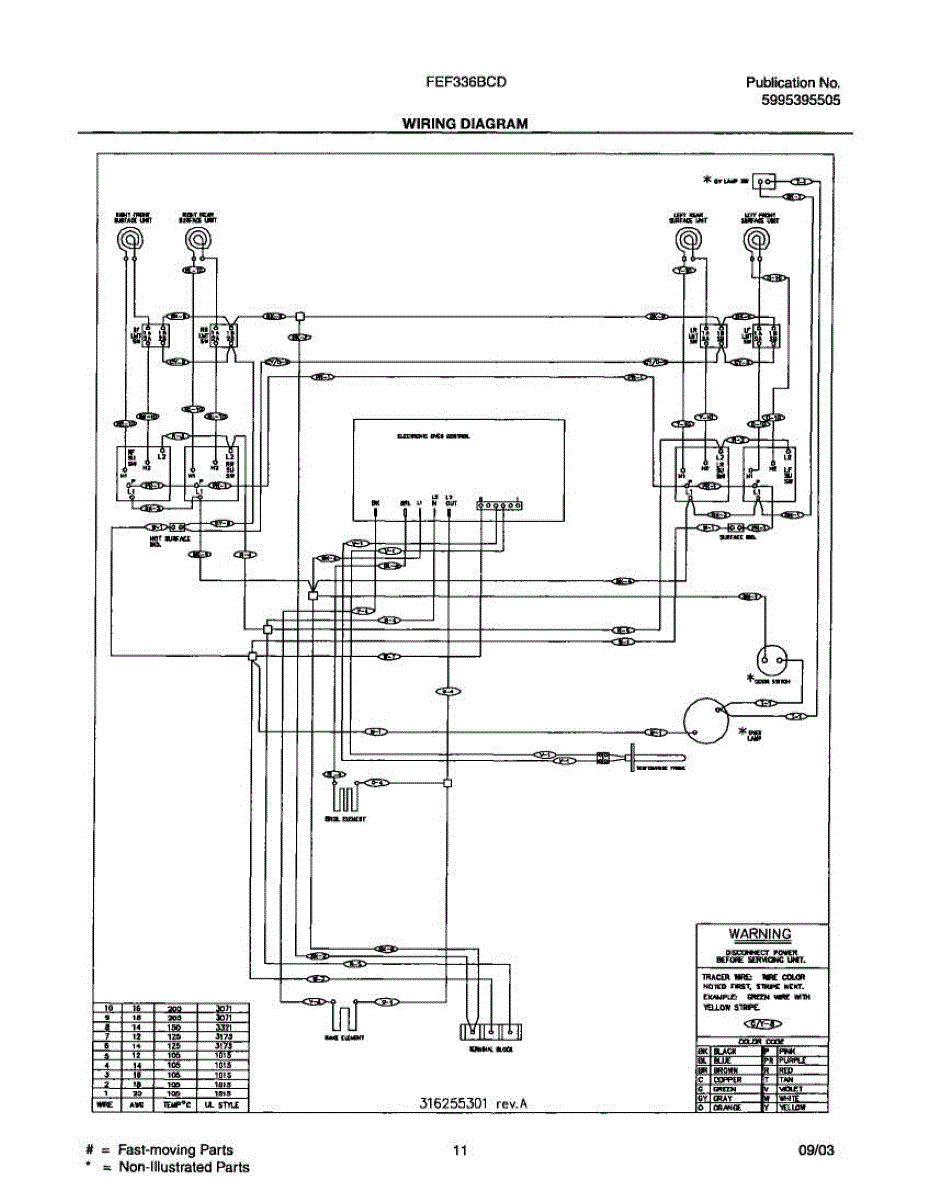 Parts for Frigidaire FEF336BCD: 11 - Wiring Diagram Parts