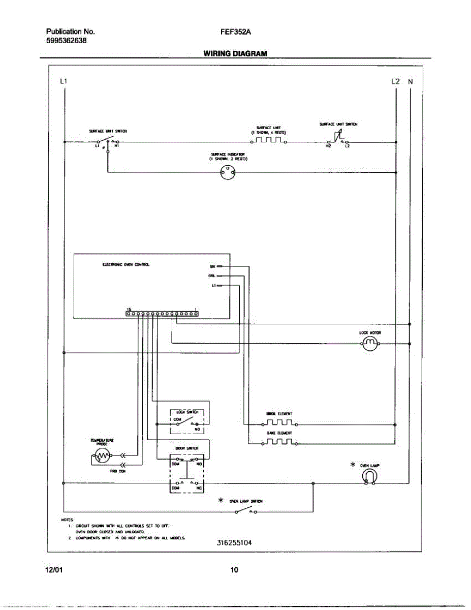 Parts for Frigidaire FEF352ASB: 10 - Wiring Diagram Parts