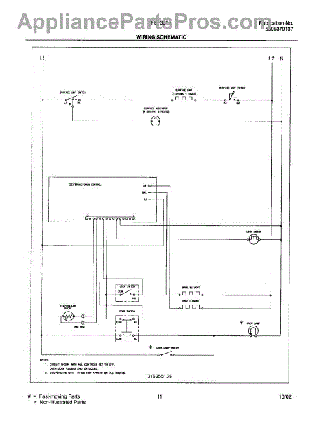 Parts for Frigidaire FEF355AQE: 11 - Wiring Diagram Parts