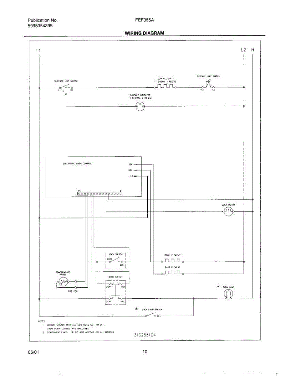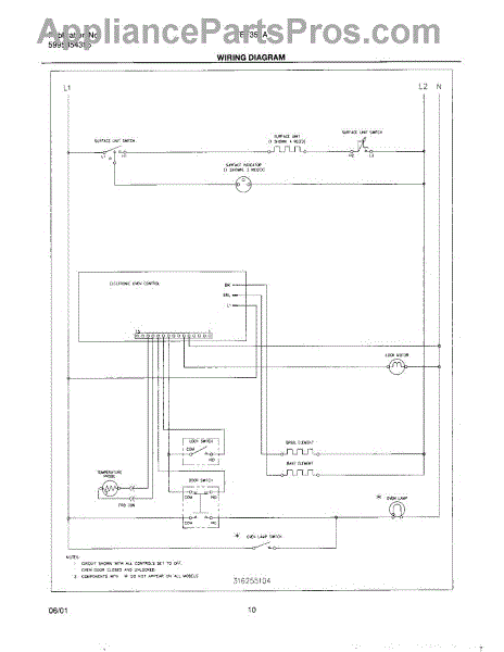 Parts for Frigidaire FEF355AUA: 10 - Wiring Diagram Parts