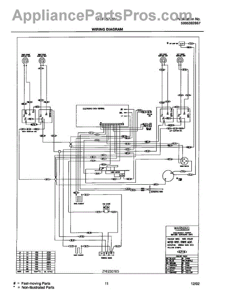 Parts for Frigidaire FEF357BBA: 11 - Wiring Diagram Parts