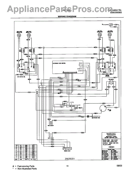 Parts for Frigidaire FEF366ASG: 11 - Wiring Diagram Parts