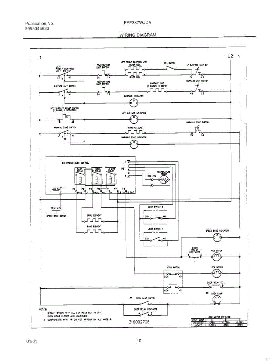 Parts for Frigidaire FEF387WJCA: 10 - Wiring Diagram Parts