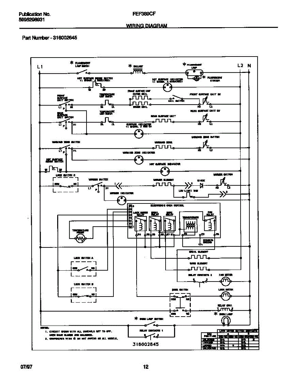 Parts for Frigidaire FEF389CFTB: 07 - Wiring Diagram Parts