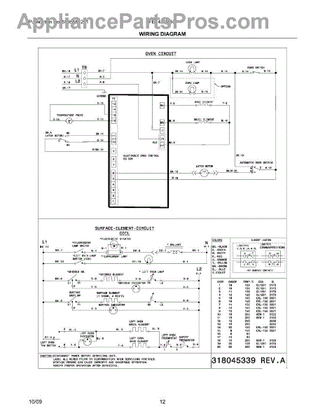Parts for Frigidaire FEF455BBG: 12 - Wiring Diagram Parts