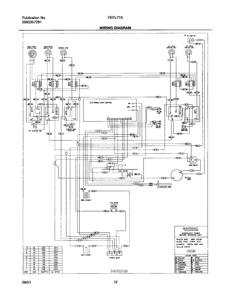 Parts for Frigidaire FEFL77ABA: 12 - Wiring Diagram Parts